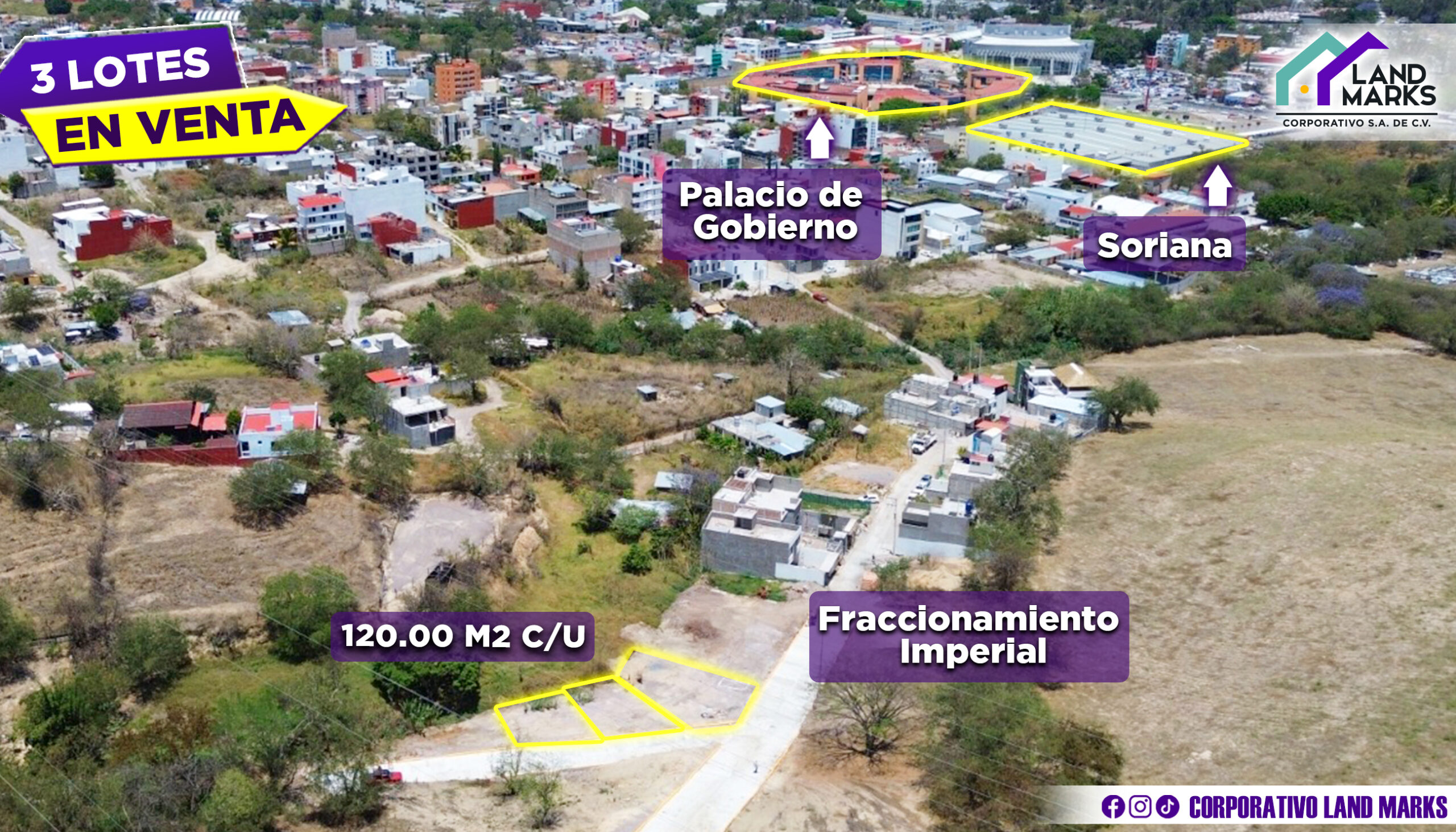 LOTES EN VENTA FRACC. IMPERIAL, CHILPANCINGO, GUERRERO PRECIO DE VENTA $6,000.00 MXN🇲🇽 POR METRO CUADRADO SUPERFICIE TERRENO🟣 120 m2 SERVICIOS🟣 drenaje 🟡 energía eléctrica 🟣 documentación en regla