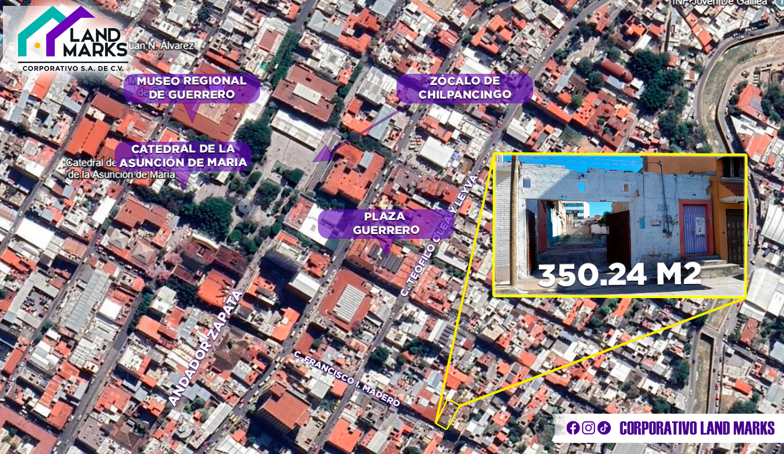 TERRENO EN VENTA CALLE FRANCISCO I. MADERO, COL. CENTRO, CHILPANCINGO, GUERRERO PRECIO DE VENTA $15,000.00 MXN🇲🇽 POR METRO CUADRADO SUPERFICIE TERRENO🟣 350.24 m2 SERVICIOS🟣 drenaje 🟡 energía eléctrica 🟣 documentación en regla BJ